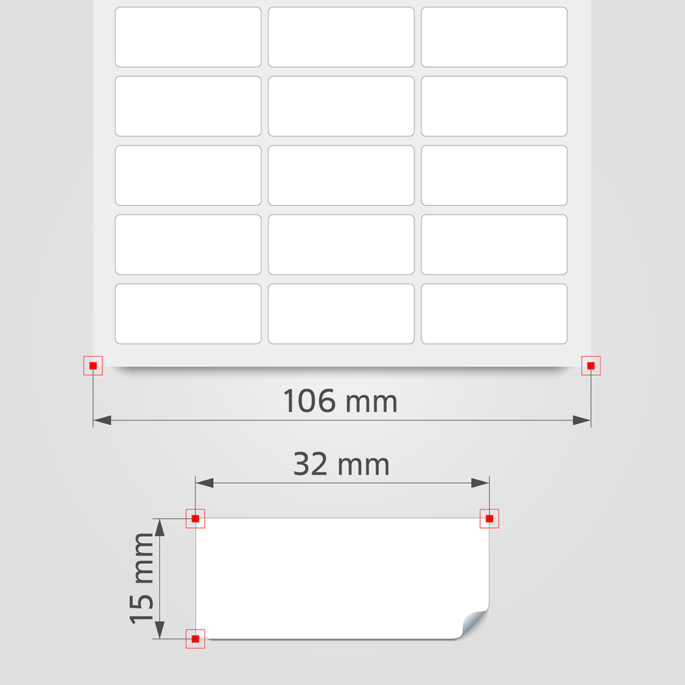 - Dimensiones de la Etiqueta: 32 mm de ancho x 15 mm de alto.