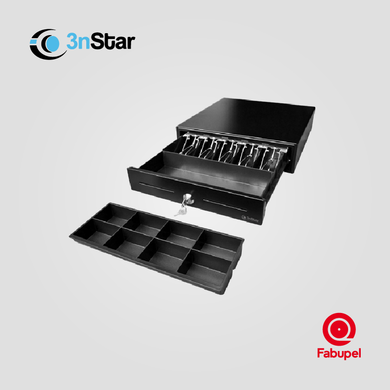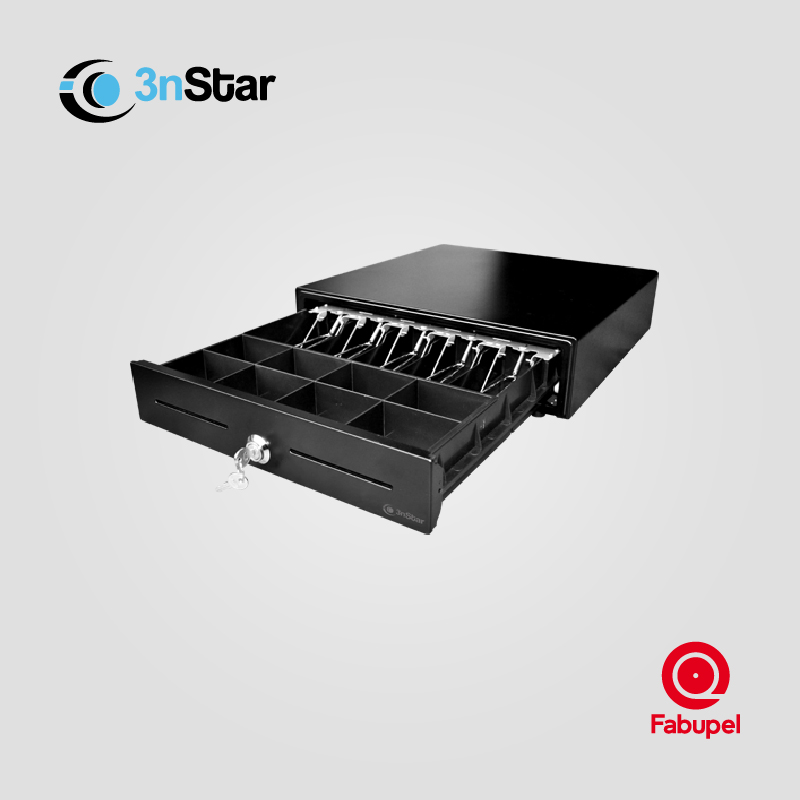 Robusta y segura, está fabricada en acero para resistir uso intensivo en entornos comerciales. Su sistema de apertura eléctrica y bloqueo con llave garantiza control y confiabilidad en el punto de venta.